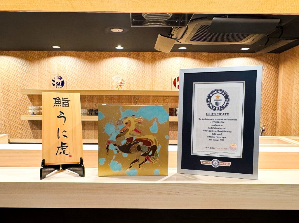 この落札額が、ウニの競り落札額としてギネス世界記録™に正式認定され、2026年1月30日、公式認定証の授与式が執り行われましたことをお知らせいたします。