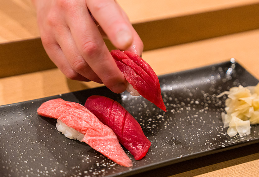 職人が状態を見極め、一貫ずつ丁寧に握ります。